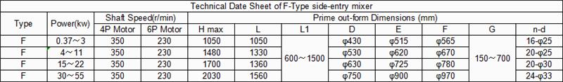 يمكن تركيب خلاطات الإدخال الجانبي من النوع F في خزان البترول، وخزان التشحيم، وأسطوانة زيت الوقود، وخزان البارافين، وخزان الأسفلت (للأسفلت المطاطي الثقيل، والقار البترولي الأساسي، والأسفلت من الدرجة A) وبعض صهاريج التخزين للمواد المضافة وغيرها من الوسائط التي تحتاج إلى التحريك.