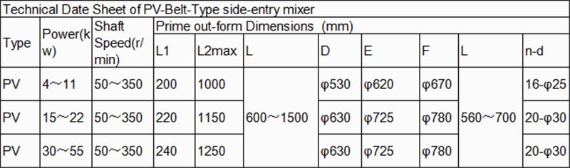 يمكن تركيب خلاط الإدخال الجانبي من النوع PV في خزان البترول، وخزان التشحيم، وأسطوانة زيت الوقود، وخزان البارافين وبعض صهاريج تخزين المواد المضافة والوسائط الأخرى التي تحتاج إلى التقليب.