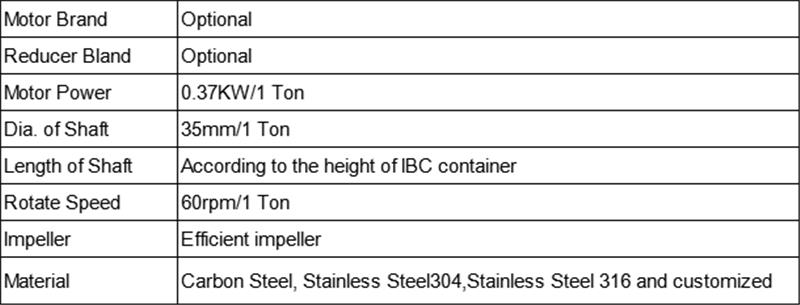 يتم استخدام محرض حاوية IBC لتجانس وتعليق وإذابة السوائل في حاويات IBC.لدى KEHENG MIXING العديد من المحرضات الكهربائية المناسبة لتطبيقات مختلفة.